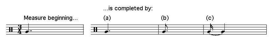 2. What note value (or combination) completes one full measure of 3/4 beginning as shown?