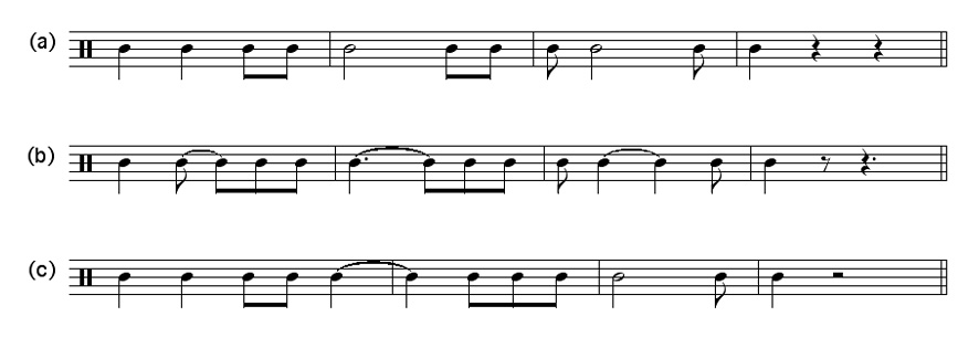 3. Choose the notation that corresponds most naturally to a time signature of 6/8.