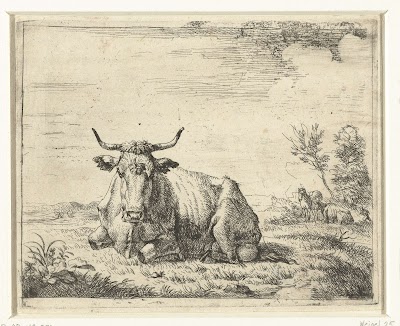 Stier staand in ondiep water, Adriaen van de Velde, 1657 - 1659
