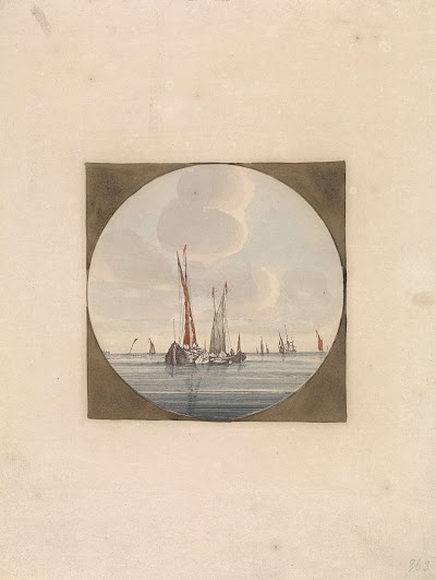 Rond de schuiten staan figuren. Blad 8 recto uit een schetsboek met 95 bladen.