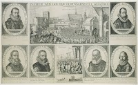 ? from the painter to the Teding van Berkhout family;{According to a document preserved in the Rijksmuseum, RP-P-OB-77.314, dated 15 March 1851. This is a copy of a document probably written by a former owner of the painting, C.P.L. Hanninschat, 18th century (?), which was published in J. den Tex, _Oldenbarnevelt_, IV, Haarlem 1970, pp. 655-58. It is part of the ‘dossier’ mentioned in the catalogue for the sale, Baroness Taets van Amerongen van Natewisch, née Hodshon, et al., Amsterdam (F. Muller), 1 November 1892, p. 9.} from whom to Jacob van Foreest (1640-1708), Hoorn, 1704;{See the previous note.} his descendants;{See the first note in this section.}…; sale, Amsterdam (P. van der Schley et al.), 20 May 1799 _sqq._, no. 173 (‘Een ryke Ordonantie vol gewoel zinspeelende op de vier en twintig Rechters van J. van Oldenbarneveld, tegens de muur hangt een papier waarop Frucidata [sic] Innocentia […] op doek […] hoog 24 breed 33 duim [61.7 x 84.8 cm]. NB Den Koper zal eene nadere sleutel van deeze Ordonantie ter hand gesteld worden, benevens een op zilver geschilderd pourtrait van J. van Oldenbarneveld, ’t geen op de zittende man in ’t stuk past.’), fl. 231, to J. Spaan;{Copy RKD.}…; ? sale, Willem Frederick Taelman Kip et al.,{According to GPI, N-3, the seller was Roelof Meurs Pruyssenaar.} Amsterdam (P. van der Schley et al.), 16 March 1801, no. 4 (‘een uitmuntend Stuk, zynde volgens de daar by zynde sleutel, een der twee Origineele stukken van de Historie van Johan van Oldenbarneveld, zittende voor zyn 24 gediligeerde Rechters, meesterlyk geschilderd, door C. Saftleven, benevens het Prentje van zyn Pourtret’), fl. 68-10, to Jan Yver;{Copy RKD.}…; Jonkheer Willem Pieter Adriaan Teding van Berkhout (1791-1874), Arnhem, 1851;{See the first note in this section.} his son, Jonkheer Rudolph Isaac Teding van Berkhout (1830-1892), Arnhem, 1891;{NHA, ARS, IS, inv. 171, no. 178 (10 December 1891).} sale, Baroness Taets van Amerongen van Natewisch, née Hodshon, et al., Amsterdam (F. Muller), 1 November 1892, no. 41, fl. 660, to Gijsbert de Clercq;{NHA, ARS, IS, inv. 172, no. 136 (29 October 1892); NHA, ARS, Kop., inv. 289, pp. 338-39, no. 771 (9 December 1891), inv. 290, p. 35, no. 899 (26 October 1892).} by whom donated to the museum, with SK-A-1589, November 1892{NHA, ARS, IS, inv. 172, no. 155 (17 November 1892); NHA, ARS, Kop., inv. 290, p. 39, no. 909 (19 November 1892), pp. 39-40, no. 910 (19 November 1892).}