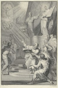 …; ? sale, Dirk Versteegh (1751-1822, Amsterdam), Amsterdam (J. de Vries et al.), 3 November 1823, Album 2L, no. 57 (‘L’Esquisse d’une pièce de cheminée, pour la chambre des Echévins à l’ancien Hotel de ville d’Amsterdam, lavé à l’encre de la Chine, par Boll’), fl. 7, to the dealer A. Brondgeest, Amsterdam;{Copy RKD.} …; sale, Baron Jan Gijsbert Verstolk, Heer van Soelen en Aldenhaag (1776-1845, The Hague and Soelen, near Tiel), Amsterdam (J. de Vries et al.), 22 March 1847 sqq., Album B, no. 48 (‘Ferdinand Bol. Croquis, lavé à l’encre de la chine, du tableau représentant le proclamation de la Loi sur le mont Sinaï, qui se trouve dans la salle des échevins de la ci-devant maison de ville d’Amsterdam’), fl. 11, to the dealer C.F Roos, Amsterdam;{Copy RMA.} …; sale, Jan Hendrik Cremer (1813-85, Brussels) et al., Amsterdam (F. Muller), 15 June 1886 sqq., no. 35, fl. 40, to William Pitcairn Knowles (1820-94), Rotterdam and Wiesbaden (L. 2634);{Copy RMA.} his sale, Amsterdam (F. Muller), 25 June 1895 sqq., no. 84, fl. 31, to the dealer H.J. Valk for the Vereniging Rembrandt;{Copy RKD; note RMA.} from whom purchased by the museum (L. 2228), 1897