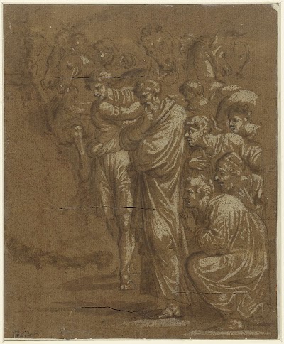 pen and brown ink, with opaque white; traces of framing line in brown ink, h 139mm × w 151mm Catalogue entry