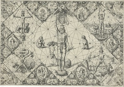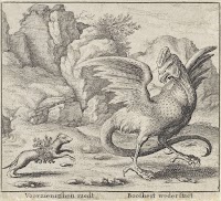 Perseus vliegt te paard boven zee en houdt het afgehakte hoofd van Medusa aan de slangenharen vast. Voor hem ligt een zeemonster, links op de achtergrond staat Andromeda vastgeketend aan een rots. De mythologische scène is omlijst met gebladerte. Links hiervan blaast de Faam de bazuin, drie putti maken aan weerszijden muziek. Onderin de prent staat een drieregelig onderschrift in het Frans.
