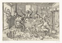 De doedelzak geeft geen geluid, dan als hij vol is, Hendrick Goltzius (attributed to workshop of), after Karel van Mander (I), 1590 - 1594