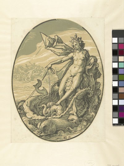 Identification Title(s) ThetisGoden en godinnen (series title) Object type print Object number RP-P-OB-10.476 Catalogue reference The Illustrated Bartsch 235 Hollstein Dutch 368-2(2) Inscriptions / marks collector's mark: Lugt 240 collector's mark: Lugt 2228a Description De godin Thetis, varend op een schelp die getrokken wordt door vissen. Deze prent is onderdeel van een serie van zeven ovale prenten van klassieke goden en godinnen.