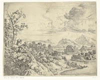 Landschap met ruïnes en op de voorgrond een zittende man, Herman Saftleven, 1626 - 1685