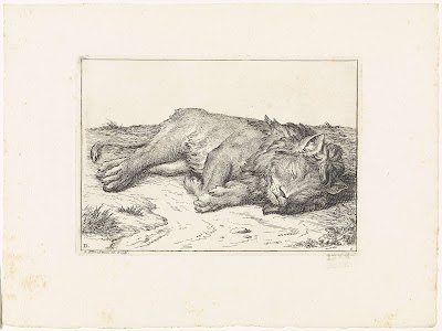 Ignatius van Loyola ligt gewond in zijn bed na het beleg van Pamplona. Voor hem een visioen van de heilige Petrus. Op de voorgrond een kleine leeuw en een kat. In de marge een tweeregelig onderschrift in het Latijn.