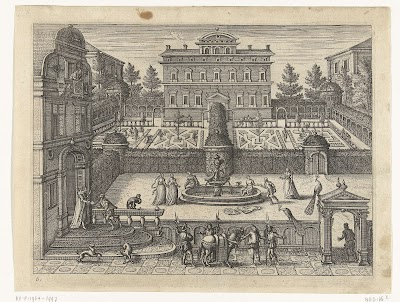 Formele tuinen bij Kasteel Heemstede / Grote vijver bij Kasteel Heemstede / Grot vanuit de galerij gezien / Grot in de tuin van Kasteel Heemstede, Isaac de Moucheron, 1706 - 1719