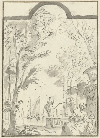 Ontwerp voor een behangselbeschildering, Isaac de Moucheron, 1677 - 1744