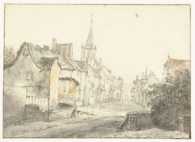 While landscape is merely a background in the drawings of Adriaen van Ostade, for his brother Isaac it was often the main subject. A fine example is this meticulously detailed pen drawing of a street, coloured here and there in pale shades of watercolour. The identity of the village or town is no longer known.