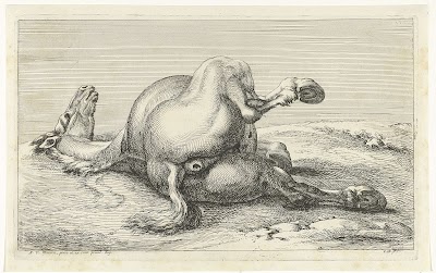 Gesneuveld paard van achter gezien, Jan van Huchtenburg, after Adam Frans van der Meulen, 1674 - 1733