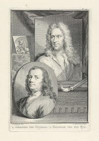 Zelfportret van Jan van Huysum in ovaal op schildersezel, Jan van Huysum, 1730