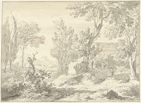Arcadisch landschap met een ruïne…