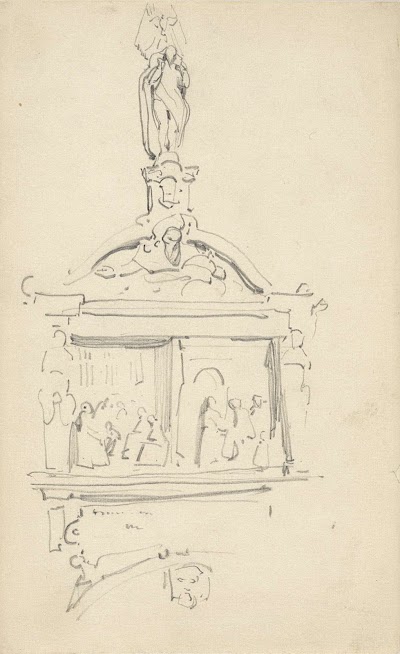 Studie naar ornamentaal beeldhouwwerk aan een godshuis, Johannes Bosboom, after anonymous, 1827 - 1891
