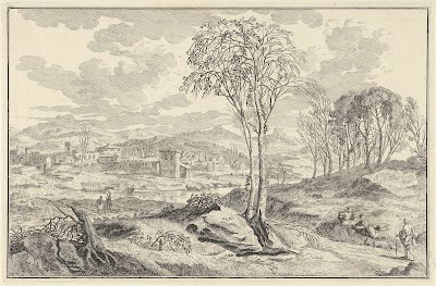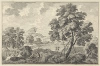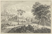 Heuvelachtig landschap met herders, Johannes Glauber, after Gaspard Dughet, 1656 - 1726