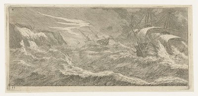 Klein zeegezicht met schepen in een storm, Reinier Nooms, 1650 - 1664