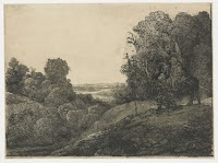 The flight into Egypt: altered plate from Seghers, Rembrandt van Rijn, c. 1653