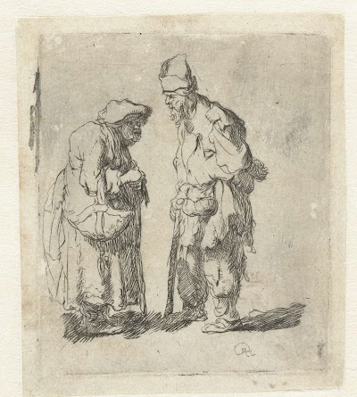 Beggar man and beggar woman conversing, anonymous, Rembrandt van Rijn, after 1630