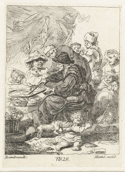 Beggar seated warming his hands at a chafing dish, anonymous, Rembrandt van Rijn, after 1630