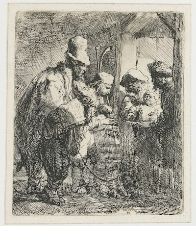 A Hurdy-gurdy Player Followed by Children, Rembrandt van Rijn, 1641
