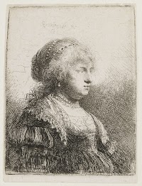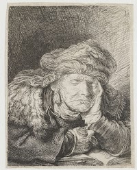 Self-portrait with bushy hair: bust, Rembrandt van Rijn, c. 1631 etching, h 50mm × w 43mm More details