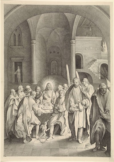 Identification Title(s) Laatste Avondmaal Object type print Object number RP-P-OB-15.637 Catalogue reference Hollstein Dutch 4 Inscriptions / marks collector's mark: Lugt 240 Description Christus toont het gezegende brood aan de apostelen. Naast hem Johannes de Evangelist.