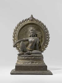 In China, Manjushri is venerated as one of the first advocates of Buddhism. On Java he appears as a young man wearing straps of jewellery across his chest. This Manjushri is probably gesturing the turning of the wheel of wisdom: this symbolises the start of the Buddhist cycle of learning and theā¦