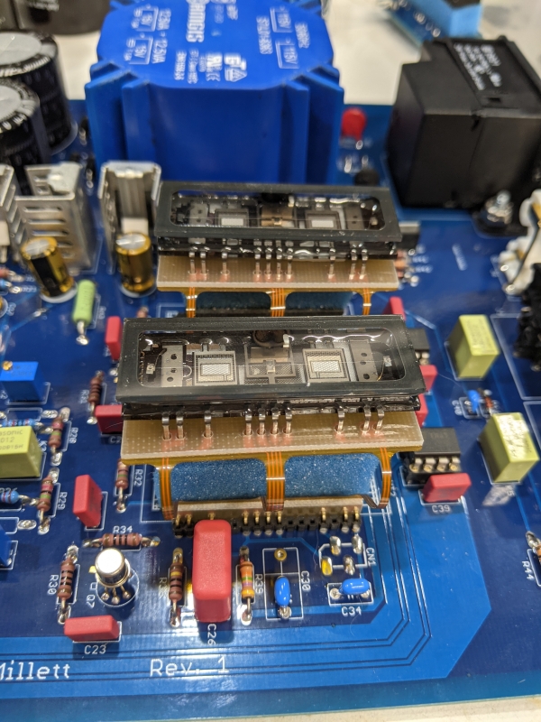 The problem can be pretty annoying, as it will transmit any shock to the PCB to the nutube, which makes a "ping" sound that can persist for some time. Although the operating point of the tube can improve things (higher current seems to make less noise), the only real solution that I have found is to mechanically isolate the tube.