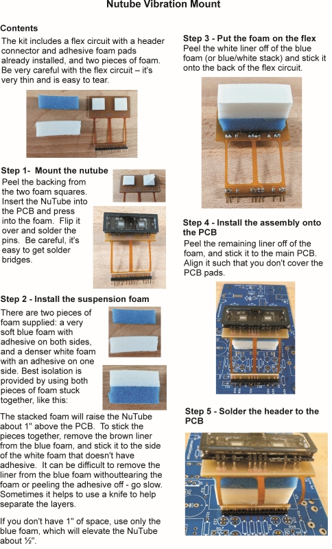 I've tried a few different ways to do this. Korg also came up with their own vibration mount. But I really wanted a scheme that could be retrofitted into existing PC boards, both mine and others (like the Pass nutube B1). Here is what I developed: